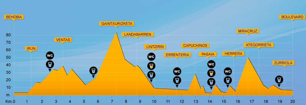 Pasamos por el arco de salida y activo el reloj que me informará sobre tiempo y distancia. Me doy cuenta casi al momento que nos hemos equivocado de cajón. Partimos demasiado atrás y toca adelantar corredores. Primer objetivo: no caerme. Difícil tarea debido a la cantidad de gente que me rodea.